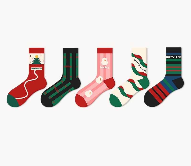 Bala socks Christmas socks women's autumn and winter tube socks winter cute cartoon couple stockings men's tide socks gift box gift